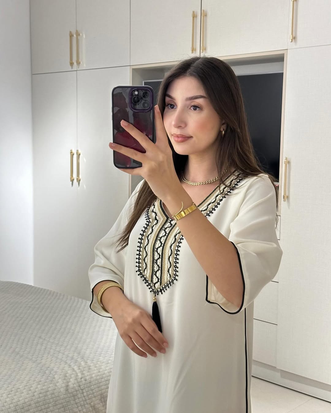 Jeba Marocaine moderne portefeuille , avec des détailles sur le coté ✨ Décoré par un galon en strass très classe ❤️
