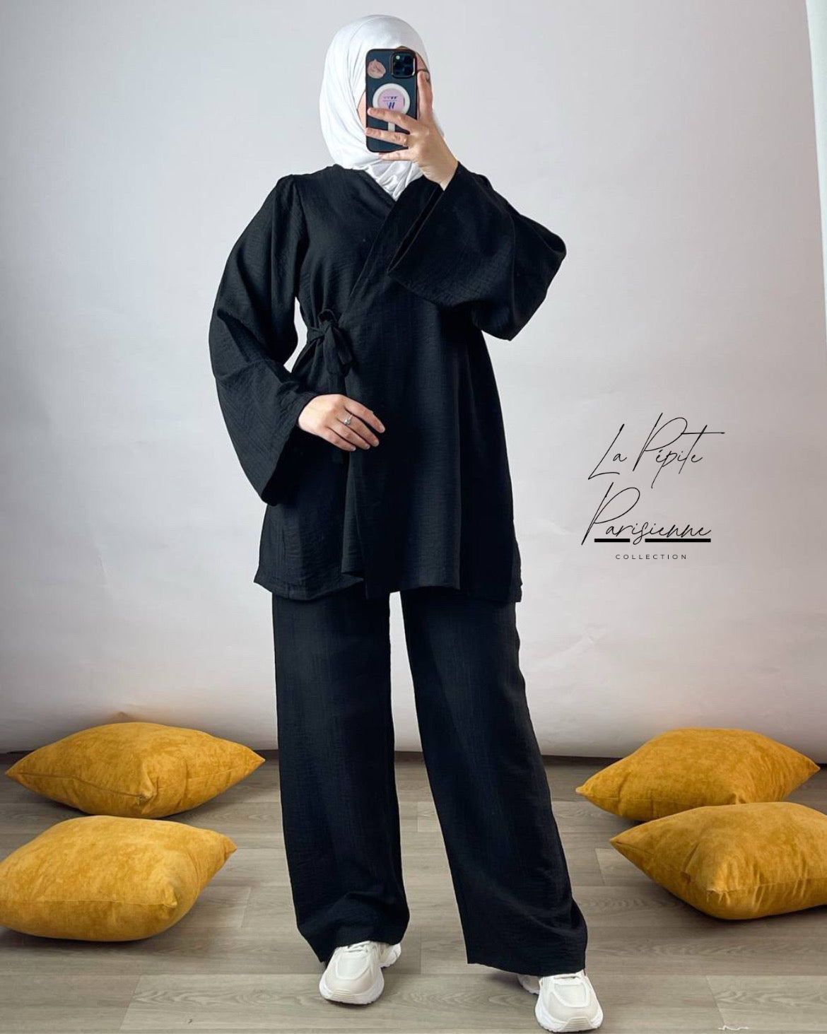 Ensemble Deux pièces , avec des détailles sur le coté ✨ Décoré par une ceinture très classe ❤️